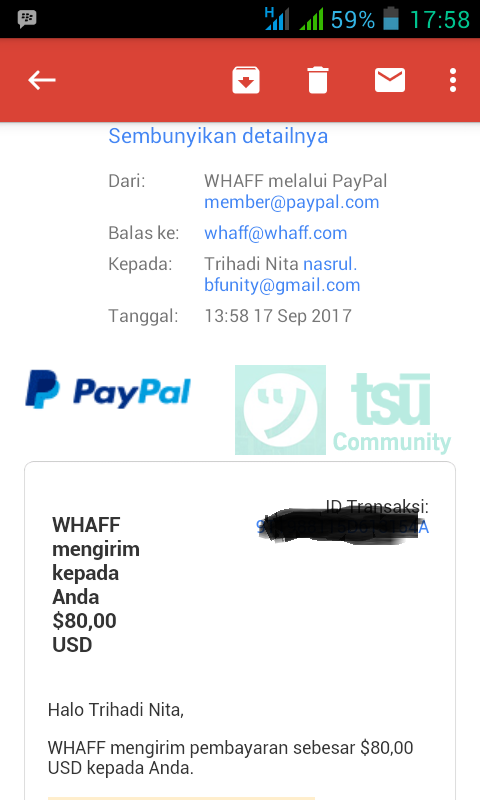 The following is a proof of payment